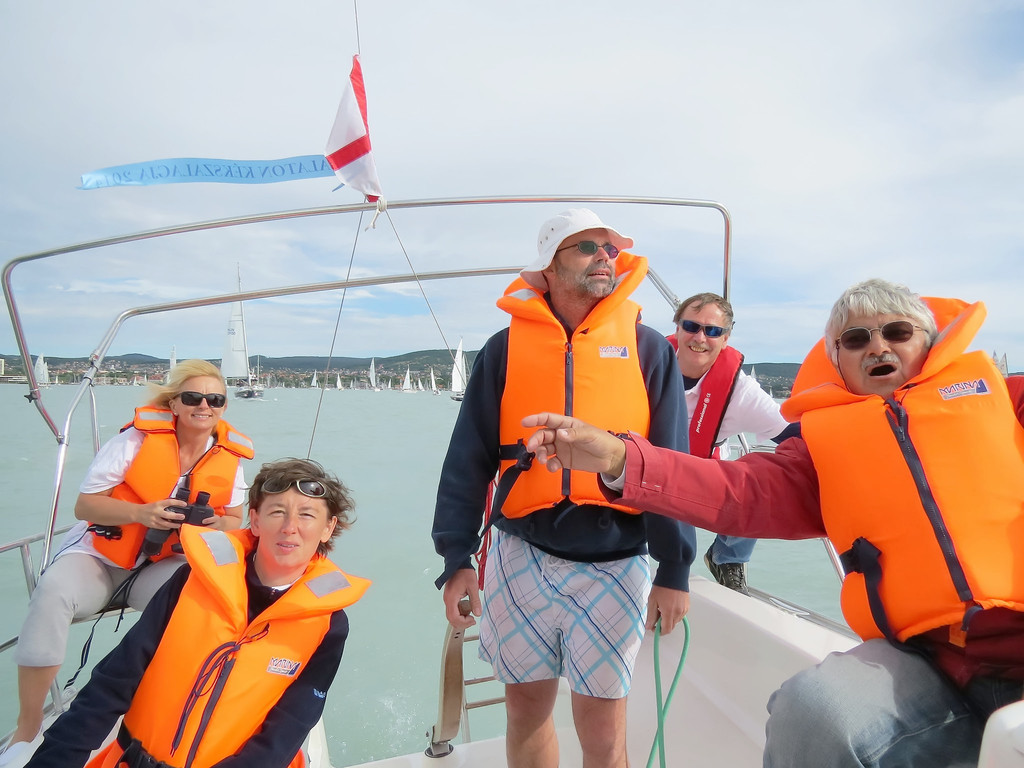 Az első etapot, a Balatonfüred-Kenese szakaszt egy fordulással, haláltakkban csináltuk meg, szinte folyamatos 1/4 szélben, átlagosan 3 csomós sebességgel, teljes vitorlázattal. Hiszem Murphy szél fújt.